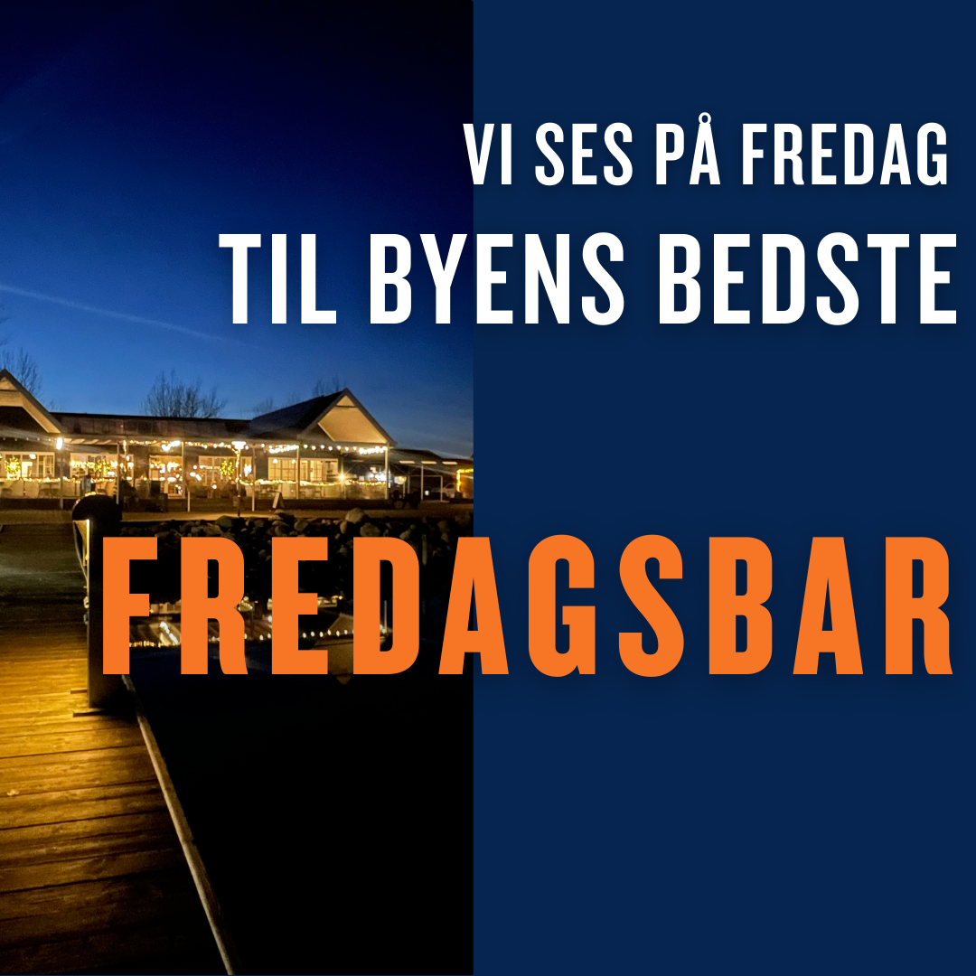 Tilbage til Alle begivenheder BYENS BEDSTE FREDAGSBAR fredag den 16. januar 2026 15.00 18.00 Anchor marinavejen 2 Kerteminde Danmark (kort) Google kalender ICS Lige om lidt er det fredag igen - og som altid åbner Byens Bedste fredagsbar kl. 15.00 – den perfekte start på weekenden.Vi lover 80ér musik, god stemning, 1 stor fadøl (Classic/Pilsner) til kr. 50,00 og et godt glas vin eller bobler til kr. 60,00.Vi ses i baren.